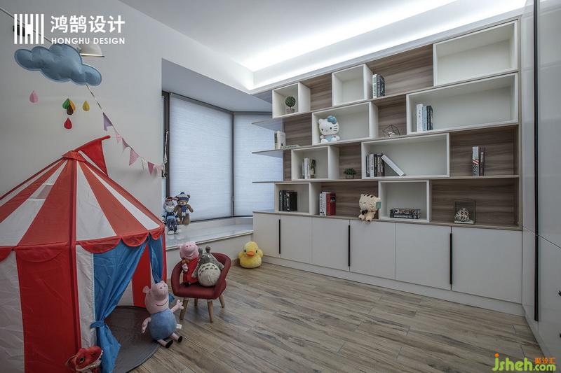 兒童房的設(shè)計,室內(nèi)設(shè)計師運用了很多的明亮的顏色,可愛的漫畫壁紙搭配上明亮的顏色,充滿童趣。