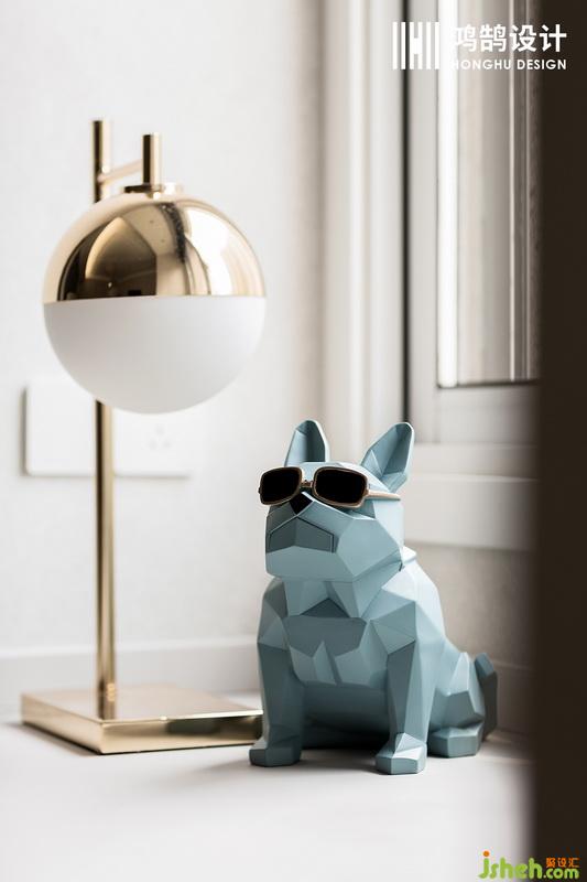 和客廳相比,臥室的顏色主色調(diào)相對就會比較厚重一些,但是室內(nèi)設計師配上白色的木柜,以及金屬質(zhì)感的燈具,質(zhì)感滿滿的同時,也會增加時尚感。