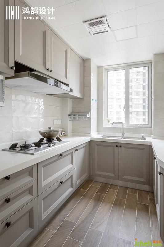 廚房的置物柜比較多,在風格上室內(nèi)設計師也是選用了美式的櫥柜,做出一個呼應。