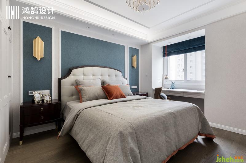 美式設計講究的是對稱,室內(nèi)設計師在設計時,無論是電視柜的擺放,還是壁燈的設計都是精心挑選,讓整個空間無論是顏色搭配還是美式氛圍都能夠相得映彰。