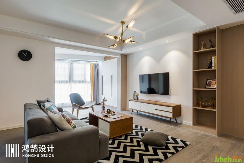 設(shè)計(jì)公司將原生活陽(yáng)臺(tái)打通,與客廳連為一個(gè)整體,即做到了充分的采光、收納要求,也使空間更加開敞、整體。