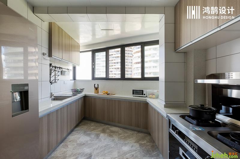 本案在設(shè)計(jì)之初應(yīng)業(yè)主要求,考慮到他們家有三代人居住,要有兩個(gè)衛(wèi)生間,家里東西比較多要有獨(dú)立的儲(chǔ)物空間,結(jié)合實(shí)際中的異形戶型,設(shè)計(jì)公司在平面規(guī)劃上耗費(fèi)了大量的精力,力求將每一個(gè)空間都得到有效的利用。平面布局以充分利用空間為主要目的,將玄關(guān),餐廳,廚房,客廳等公共活動(dòng)空間放大,表現(xiàn)出開闊的空間感,和最大化的采光利用。整體色調(diào)以黑白灰及木色為主,點(diǎn)綴亮眼的紅色,藍(lán)色,使得整個(gè)空間活潑、靈動(dòng)。