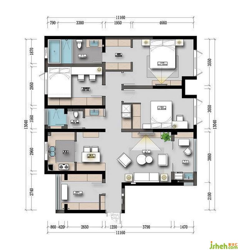初次見到陸小姐,溫柔嬌小的外表下有著對未來房子的美好暢享,一對懂生活的90后.男主人喜歡帶著耳機(jī)做一桌子的好菜。整個戶型把原有建筑的空中花園做成了女主人超愛的衣帽空間,廚房與餐廳鏈接有點(diǎn)擁擠,做了餐椅靠墻邊,增大走動空間,雙門冰箱移至到過道空間,放大廚房的操作使用。