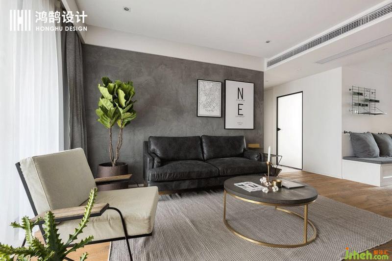 做舊復(fù)古的皮質(zhì)沙發(fā),在水泥灰的映襯下,顯得既大方,又原生態(tài)。坐在沙發(fā)上,猶如在戶外的草坪上,愜意自然。