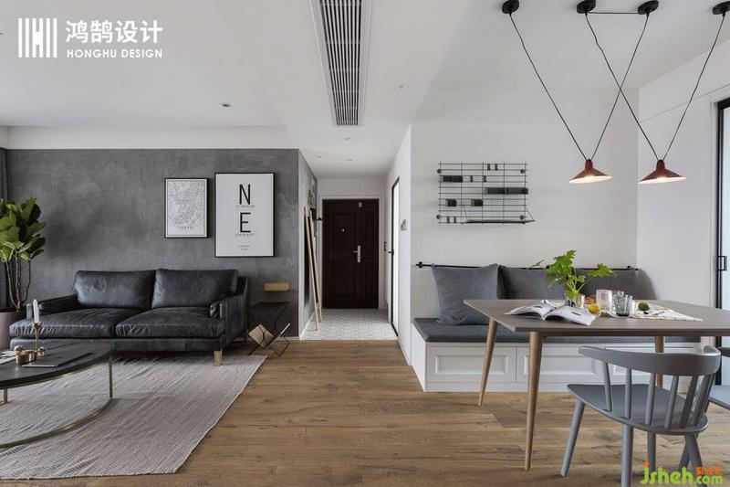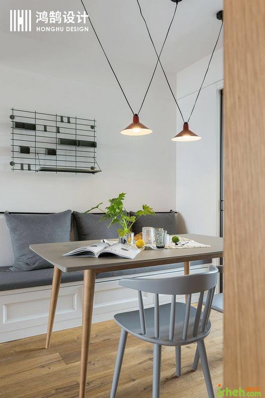 室內(nèi)設(shè)計師用卡座的形式與餐桌相連,在功能布局上,既能增加活動休閑區(qū)域,也能當(dāng)做餐椅使用。