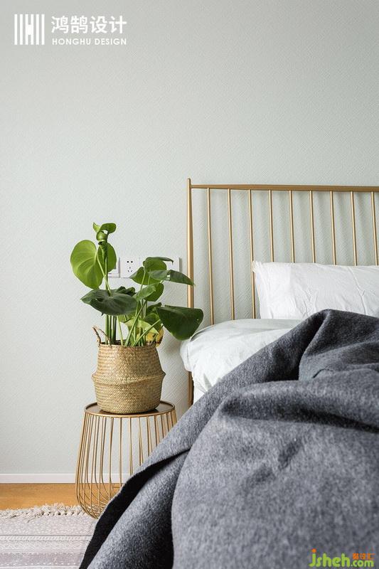次臥的整體風格是極簡的,極簡的空間中我們室內設計師卻發(fā)現很多小心機。比如灰色粉色的異色窗簾,金屬質感的床,以及看似簡單卻非常有設計感的床頭柜。讓所有的不經意,都變得剛剛好。