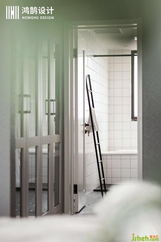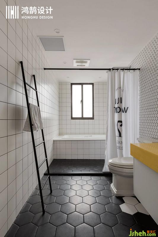 內衛(wèi)的設計,作為衛(wèi)生間控的小編真的是非常喜歡了。無論是大小的六角磚還是小四邊磚,黑白鑲嵌,美縫設計更是超現代。無論從工藝上還是設計上都是非常用心的計劃。室內設計師沒有用常規(guī)的毛巾架,而是采用階梯架子,既美觀,又實用!