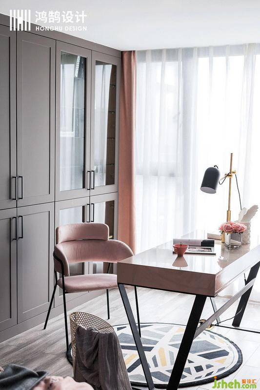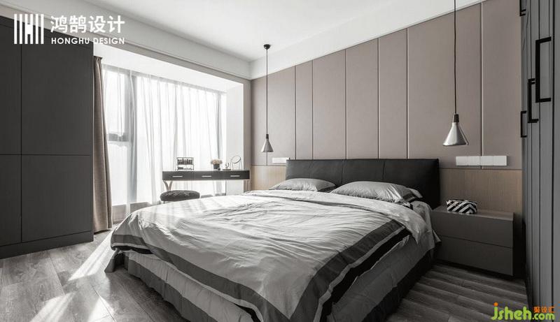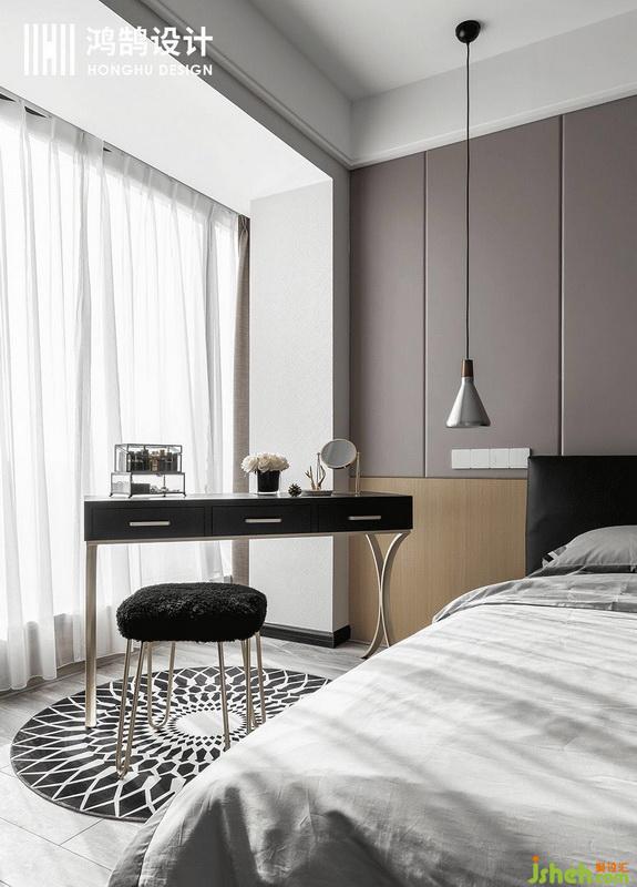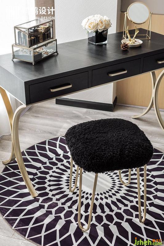 剛?cè)岵闹髋P色彩搭配,用黑色和咖色作為主色調(diào),并且用很多金屬元素作為點綴。小編最喜歡的就是那個化妝臺了,從這個化妝臺,我似乎就能了解到這戶業(yè)主女主一定是一個精致并且享受生活的女人,室內(nèi)設計師將化妝臺設計在飄窗前面,有利于光線的進入,可以給精致的妝容一個好的反饋。