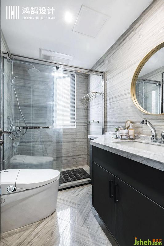 外衛(wèi)的設計則更注重于實用性,干濕分離的處理,以及金屬邊的鏡子,都是處理的相當時尚和簡潔。