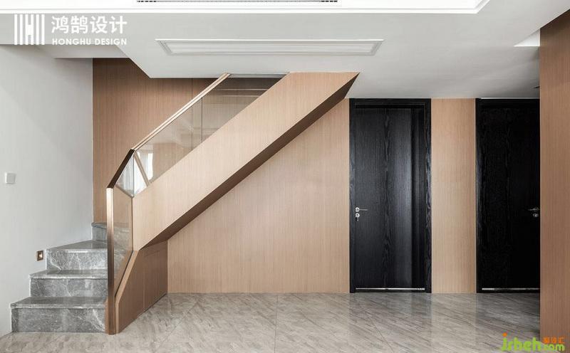 本案例是一個復式,一樓是作為男女主家居的時光,二樓是女主的烘焙工作室,室內(nèi)設計師用了原木去包裝樓梯,并且配上透明的玻璃,既通透,也充滿高級感。