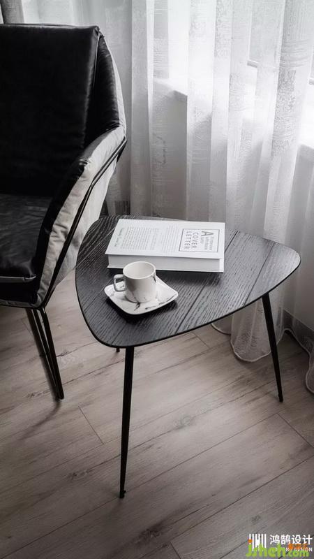 軟裝搭配上會(huì)選擇精致的款式,裝飾畫(huà)選擇上偏寫(xiě)意一些(ps:設(shè)計(jì)之初裝飾畫(huà)是橫向擺放的,但效果卻不盡人意。嘗試豎向擺放后與木飾面背景墻的豎線條相互輝映,效果反而更好了);地毯則是用漸變的深色覆蓋,能夠襯托出整個(gè)空間的氛圍。