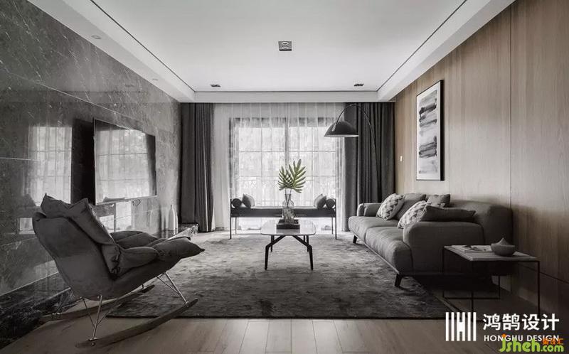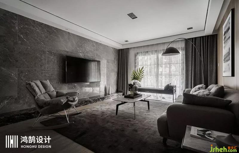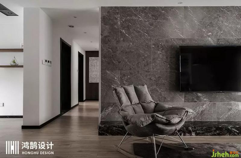 電視背景墻面鋪貼室內(nèi)設(shè)計(jì)師采用干掛大理石瓷磚的方法(ps:這里對(duì)鋪貼的工藝有點(diǎn)要求,需要用五金件先固定在墻面然后再與大理石瓷磚固定,起到一個(gè)很好的固定效果)大理石瓷磚間的縫隙使用美縫勾掉,呈現(xiàn)出一整塊大理石墻面渾然一體的效果。