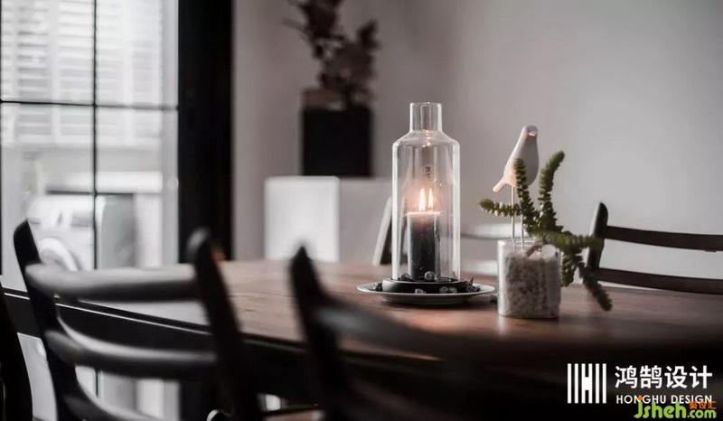 餐廳頂面吊頂處的中央空調(diào)出風(fēng)口,是找大金定制的顏色和形狀,與餐廳陽(yáng)臺(tái)的黑色玻璃移門(mén)對(duì)應(yīng)。由于房屋屬于底層,采光問(wèn)題是一個(gè)重要的考量因素,餐廳陽(yáng)臺(tái)室內(nèi)設(shè)計(jì)師做了透光的設(shè)計(jì)方式,加以百葉窗裝飾,陽(yáng)光透過(guò)窗照進(jìn)地面格外溫馨。