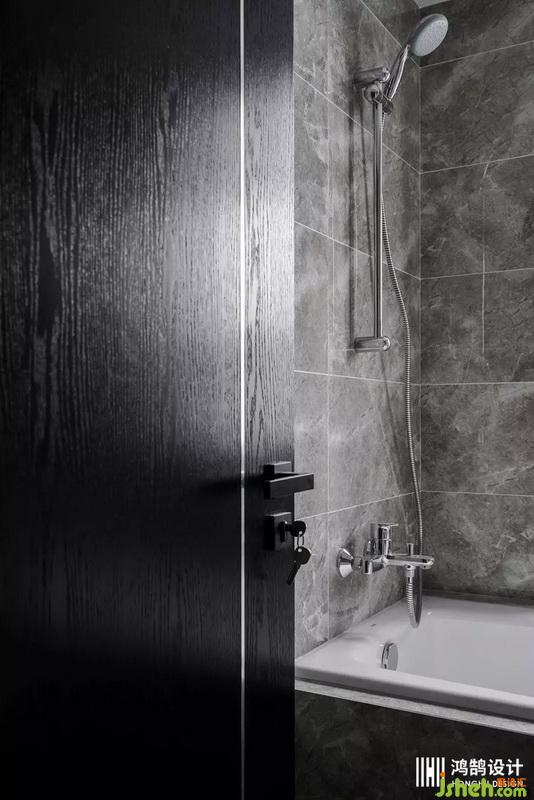 延續(xù)整體空間風(fēng)格,衛(wèi)生間也是以深色紋理大理石,以及木質(zhì)相互搭配。強(qiáng)化整體空間的質(zhì)感與縱深感。