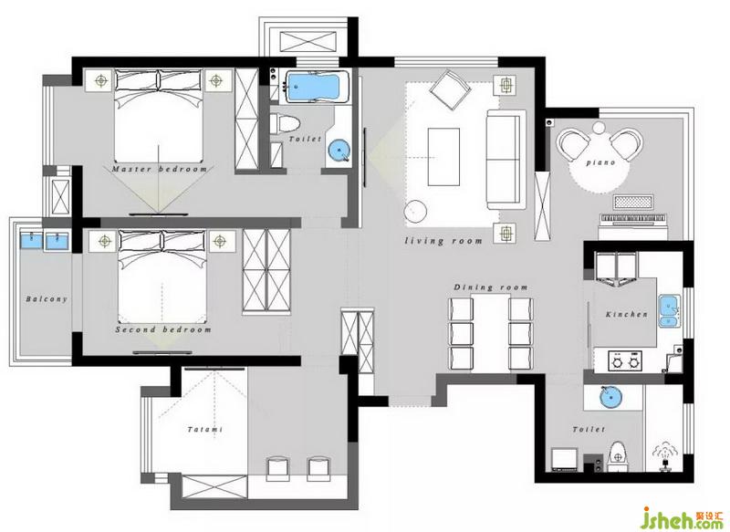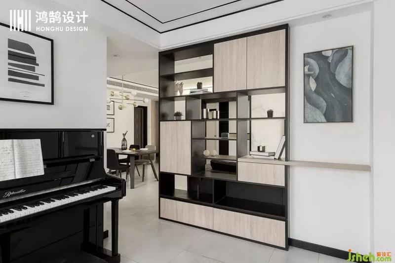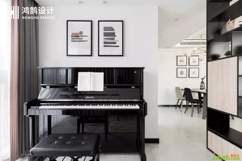 為了滿足業(yè)主對于孩子的興趣培養(yǎng),室內(nèi)設(shè)計師在客廳設(shè)計時,特別用書架隔斷,隔出一個鋼琴練習(xí)室。鬧中取靜,在家庭聚會時還能有一個展示的小舞臺。