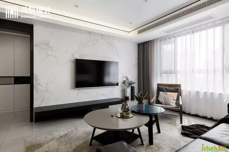 白色的大理石上墻,作為電視背景墻,和整體的氛圍,交相輝映。既好看,又好打理~