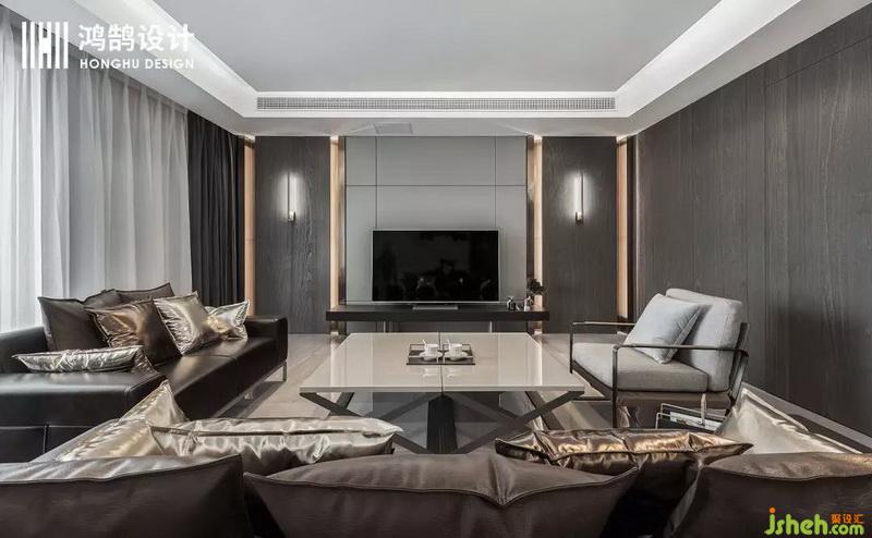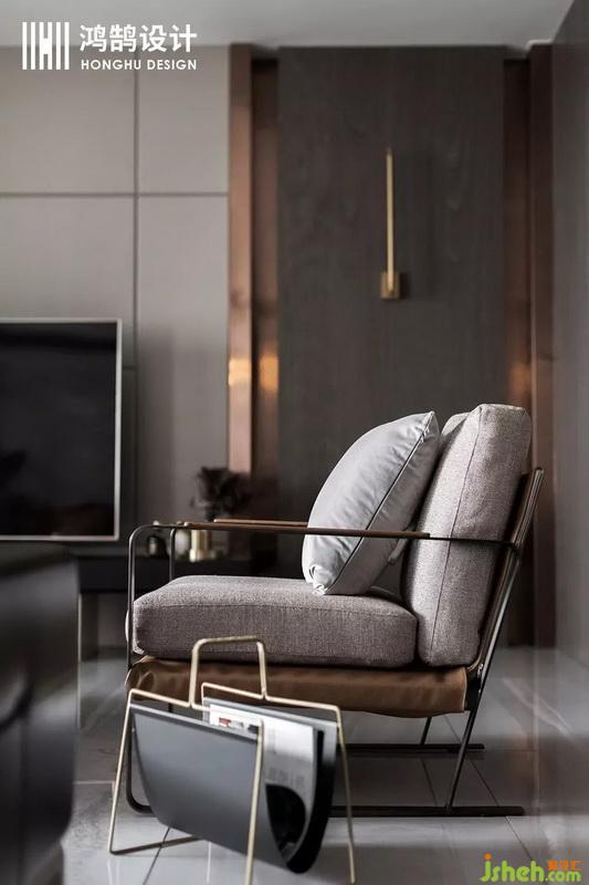 客餐廳為一個通長的空間采用中軸對稱的布局方式,讓空間顯得更加的開闊,用材上采用了木材、金屬、皮質(zhì)三種材質(zhì)的穿插,表達(dá)現(xiàn)代輕奢的質(zhì)感跟層次。