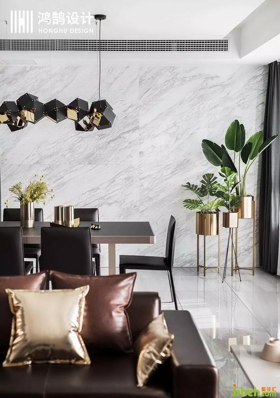 大理石上墻,讓整個就餐環(huán)境變得通透,個性化的形狀吊燈,搭配暖色光線,讓就餐風(fēng)味變得濃厚。