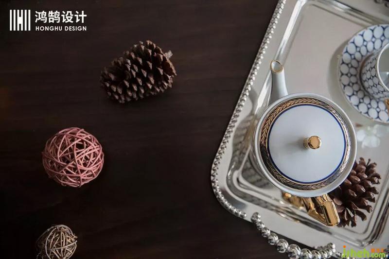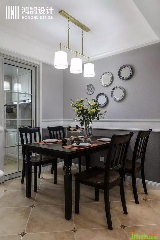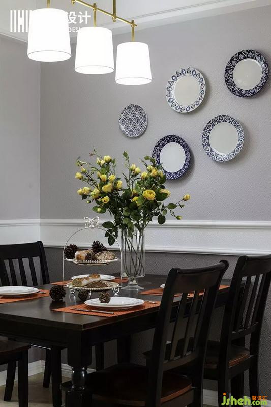 誰說美式空間不能有中國元素,青花瓷的裝飾,讓整個就餐氛圍非常有藝術(shù)感。