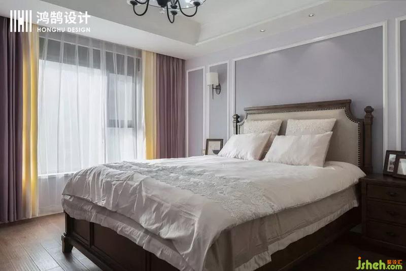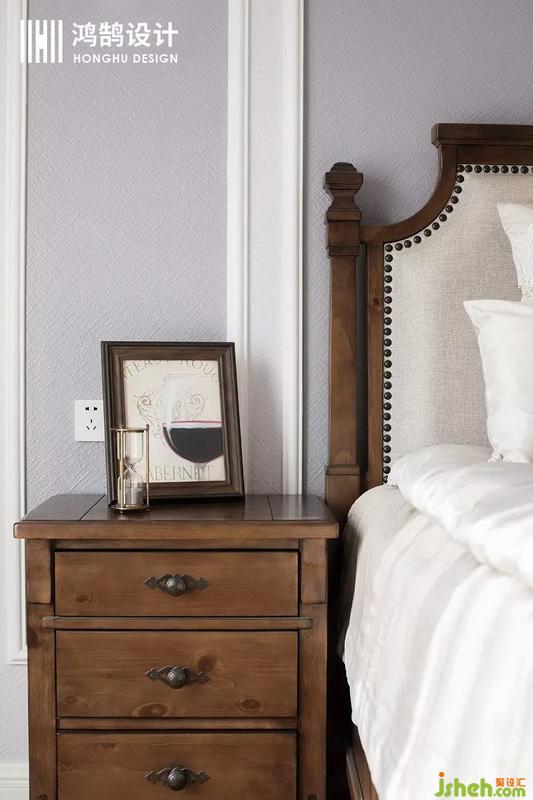 深棕色的原木床,在香芋紫的映襯下,改變了原本的呆板,多了幾分溫潤。