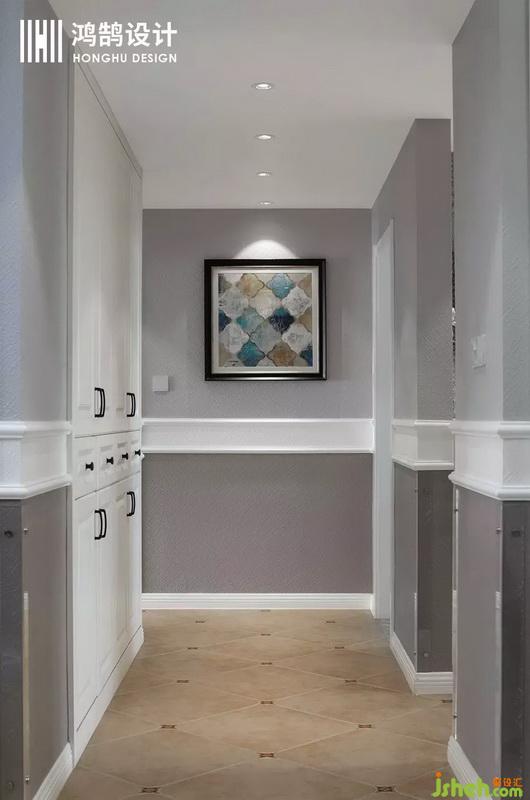 設(shè)計(jì)公司在處理過(guò)道時(shí)也是別有用心,將業(yè)主的儲(chǔ)物功能做了一個(gè)很好得規(guī)劃,將過(guò)道墻體嵌入儲(chǔ)物柜,將儲(chǔ)物柜正好設(shè)計(jì)在衛(wèi)生間對(duì)面,既能作為公共儲(chǔ)物柜,也能將衛(wèi)生間一些雜物放置于其中,便于取放。