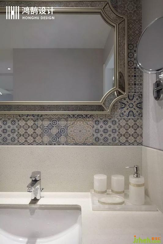 金邊復(fù)古鏡,搭配花磚上墻,經(jīng)典復(fù)古的美式,在衛(wèi)生間的角落都體現(xiàn)的至善至美。 設(shè)計(jì)公司
