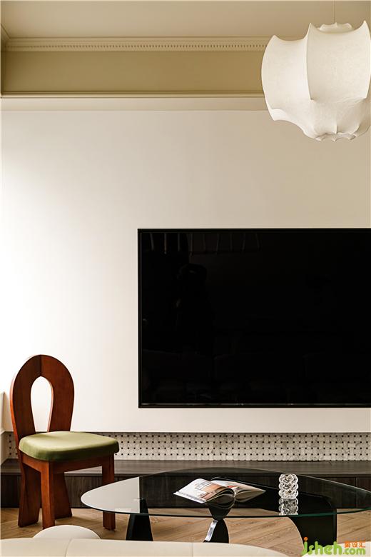 房間內(nèi)部利用花色壁紙和黑色柜體以及圓形造型,家裝設(shè)計打造了比較濃郁的復(fù)古風(fēng),同時業(yè)主家有寵物,所以在此處也專門為寵物設(shè)計了一個獨立空間;