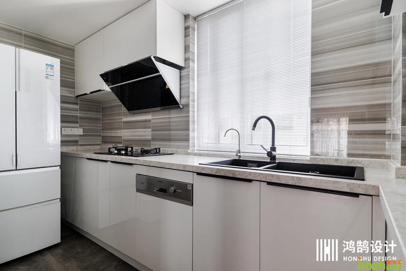 干干凈凈的廚房在里面做飯的人都感覺很舒服,室內(nèi)設(shè)計師白色的烤漆櫥柜使整個空間更顯敞亮、美觀。