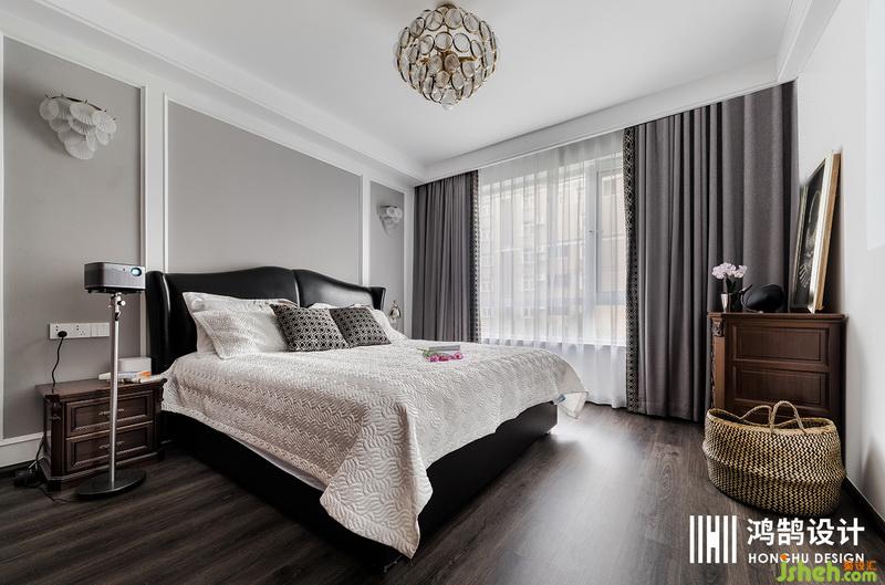 簡單的臥室空間,床頭背景室內(nèi)設(shè)計師采用對稱的設(shè)計,使臥室的布局和空間感都得到平衡。