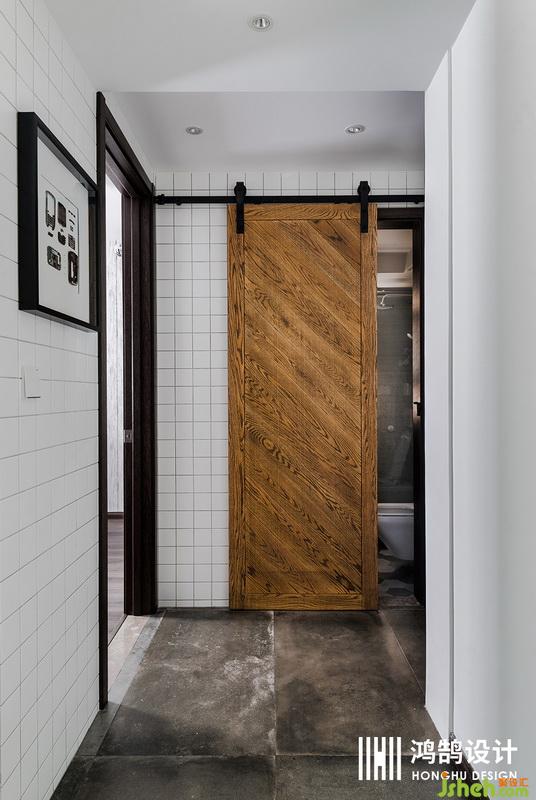 衛(wèi)生間的門室內(nèi)設(shè)計師采用的是倉谷門的設(shè)計,讓人眼前一亮,白色小方磚利落的布滿干區(qū)。