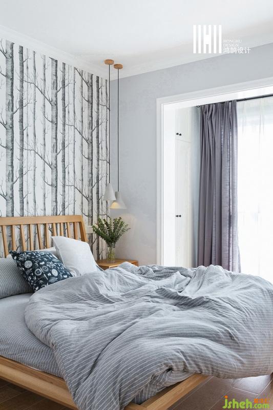 主臥簡單寧靜,適合休息入眠,室內(nèi)設(shè)計(jì)師利用原木色的家具,清新自然,白色的紗,藍(lán)灰色的簾子,裝扮出獨(dú)有的一份柔情。