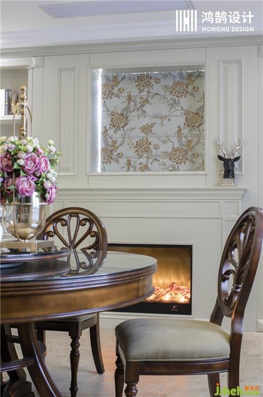壁爐裝飾幾乎是很多美劇中經常看到的家裝,設計公司用火焰的顏色與墻壁的白色形成強烈對比,給予空間豐富的層次感。