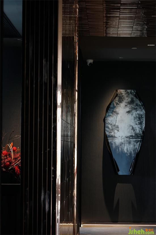 墻上的藝術(shù)裝置則如一件巨幅的山水畫卷作品,引人直視,簡潔的畫面在引發(fā)時空向往的同時,也帶來不容忽視的精神力量。日料餐廳設(shè)計身在其中,不論是靜立或徜徉,都如在閱讀歷史的詩,觸摸當(dāng)代的云,浴沐自然的風(fēng),是五感交織的神游。