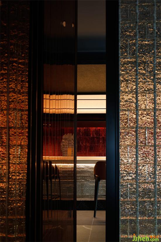 日料餐廳設(shè)計(jì)通過“在空間內(nèi)部制造空間”的方式,將一個(gè)個(gè)空間嵌入其中,不同高度的空間層次,不同肌理的材料碰撞,不同方式的燈光布置,不同維度的人流動(dòng)線,以及步移景異的觀賞方式在開放和封閉間相互切換,自有一種無聲的神秘感。