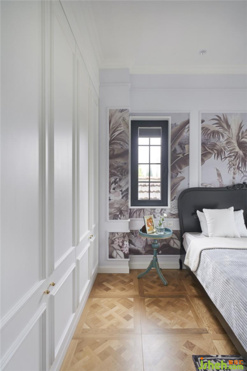 主衛(wèi)運用了干濕分區(qū),為了體現(xiàn)藝術(shù)性,在干區(qū)的部分使用了壁紙,更好感受法式設(shè)計的味道。