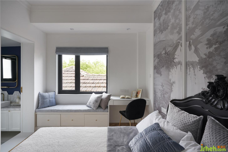 臥室的飄窗讓空間更好的延伸,與室外有很好的連接,在下雨時,小息一會,會在玻璃窗上看見流水,聽見聲音,明明坐在室內(nèi)仿佛呆在室外的天倫之樂。