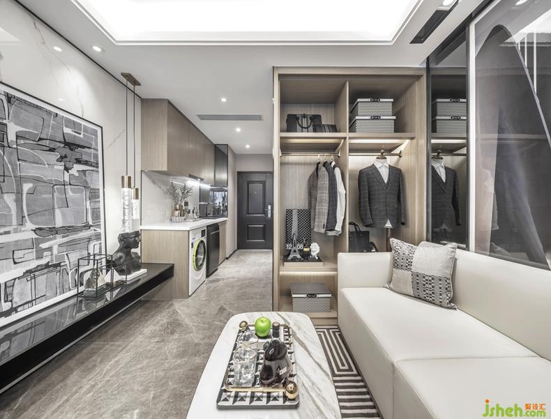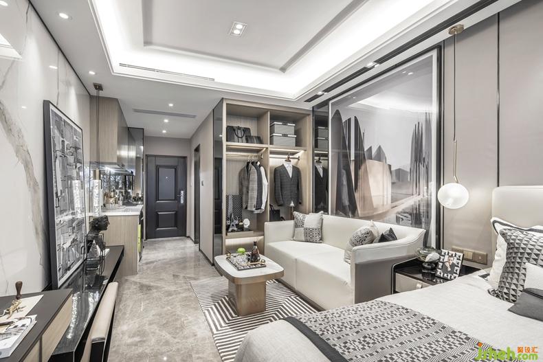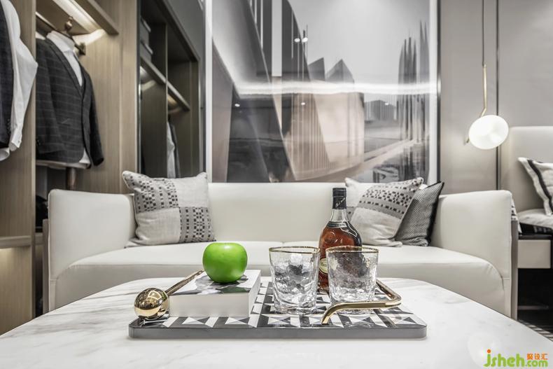 在這里,室內(nèi)設(shè)計(jì)師將質(zhì)感、思維幾何、科技感與輕奢主義從人物角度蔓延至空間中,為躋身于金融行業(yè)的30歲成功男性定義生活品質(zhì)。他注重搭配穿著、酷愛高奢高定系列,對(duì)自己的生活有非常嚴(yán)謹(jǐn)?shù)囊蠛蛻B(tài)度,而行業(yè)屬性也促使他更關(guān)注細(xì)節(jié)。