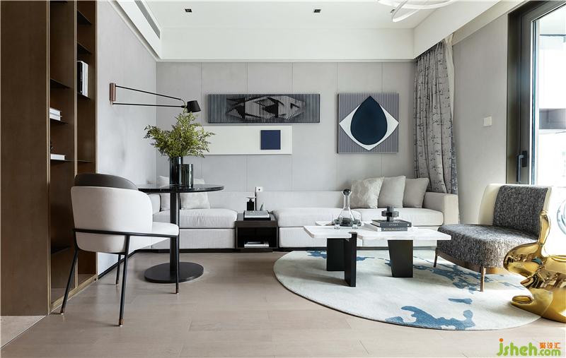 淺色系沙發(fā)、地毯搭配別致的裝飾畫和鎏金藝術(shù)品,豐盈著空間氣質(zhì)。