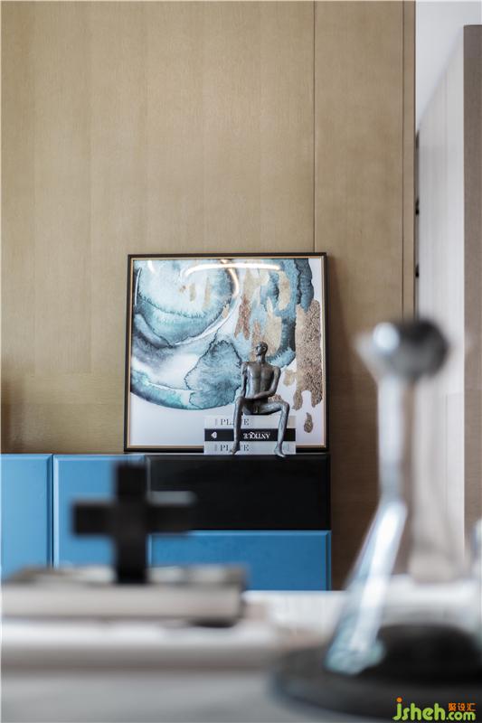 日出江花紅勝火,春來江水綠如藍(lán)。”設(shè)計(jì)師采擷大自然的一縷藍(lán)草色,調(diào)合出空間的潤澤美景,深淺不一的藍(lán)在純簡的空間中雀躍跳動(dòng),賦予空間綿綿不絕的遐想。
