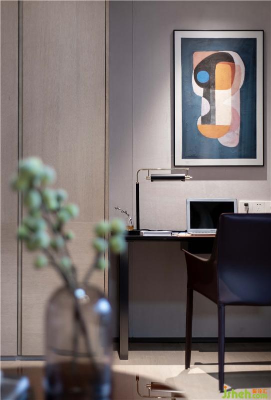 本案設計師黃后欽采用浪漫主義手法,運用現代寫意的設計風格,萃取灰咖色為基調,點綴淡素的黛綠,營造空間格調。