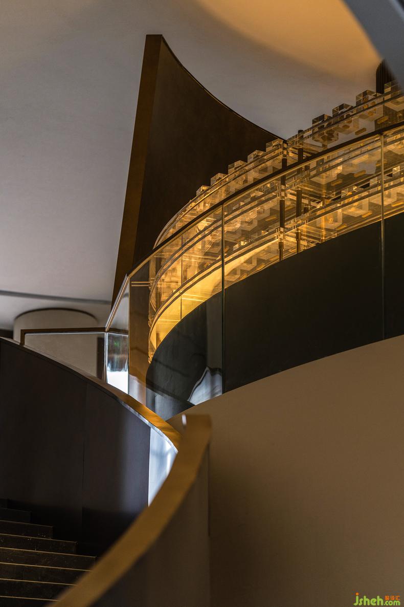 延續(xù)著空間回旋式壁面的構(gòu)造語言,在二層空間的打造中,室內(nèi)設(shè)計(jì)師設(shè)計(jì)以尺度較小的回旋式空間排布了如同漫游艙式的多個(gè)獨(dú)立功能空間,打造沉浸式的書吧、博物館等。
