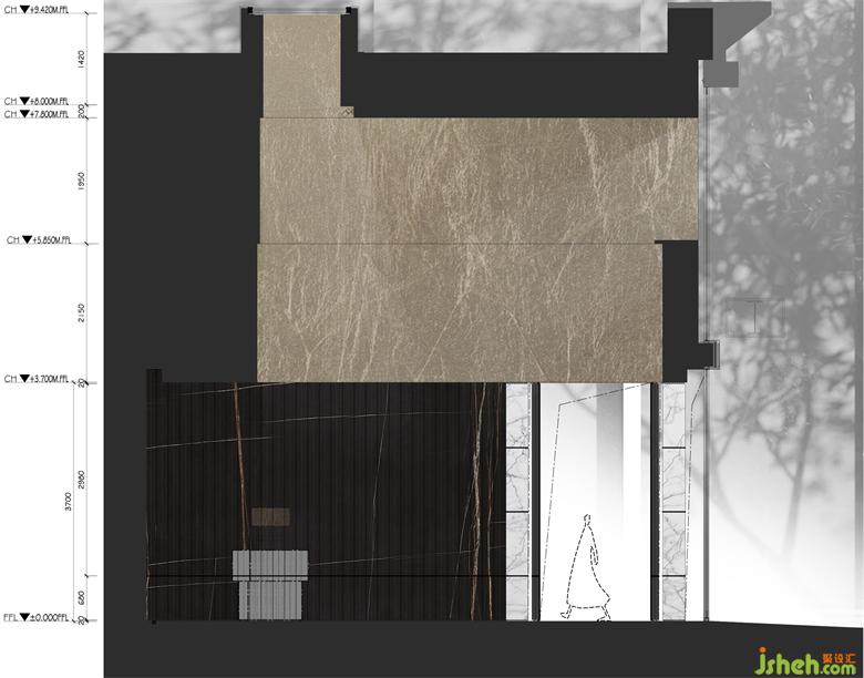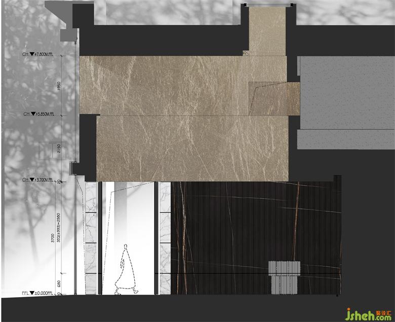主要材料: 金屬漆、木飾面、巖板、亮光銅不銹鋼、金箔