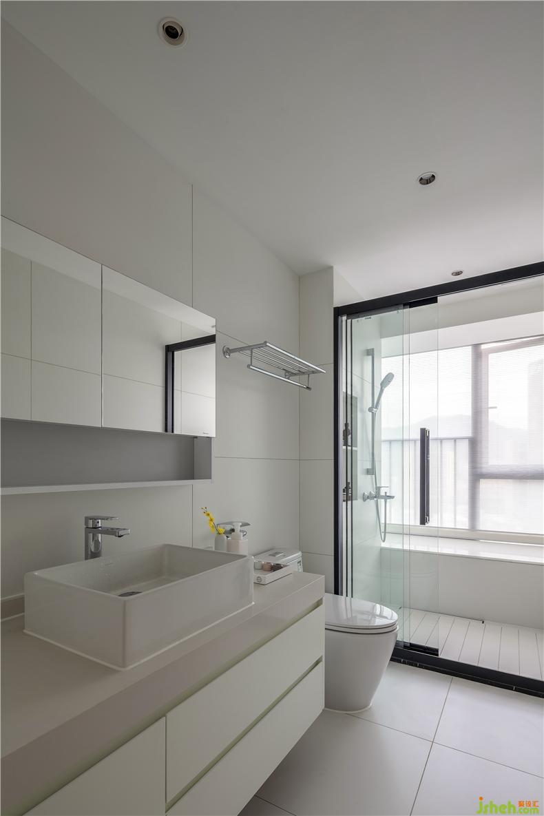 客衛(wèi)和主衛(wèi)都采用白色為主基調(diào)去設(shè)計(jì),干凈清爽。干濕分離的設(shè)計(jì),也讓衛(wèi)生間更加利落。