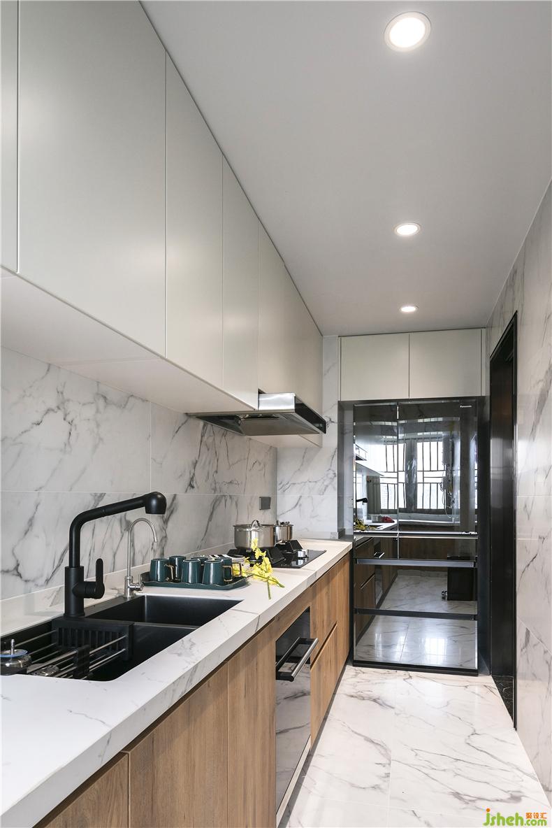 過道的氛圍燈讓人仿佛置身于陽光充足的夏天,搭配大理石的清爽色調(diào),毫無任何擁擠感,反而多了一絲寬敞的體驗感。