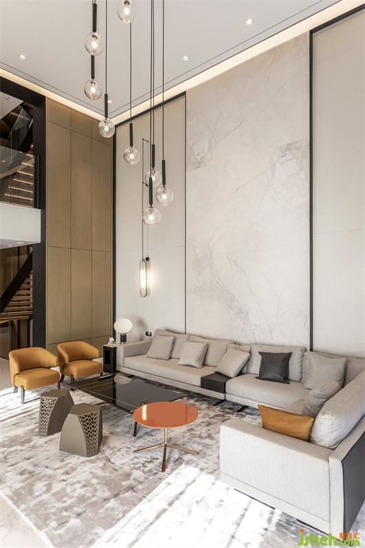 在整個空間中顏色使用暖色系,使整個空間更加的具有生活氣息,少量使用愛馬仕橙的顏色點綴空間,使空間給人的感覺更加的活躍,也使空間具有個性和溫度。