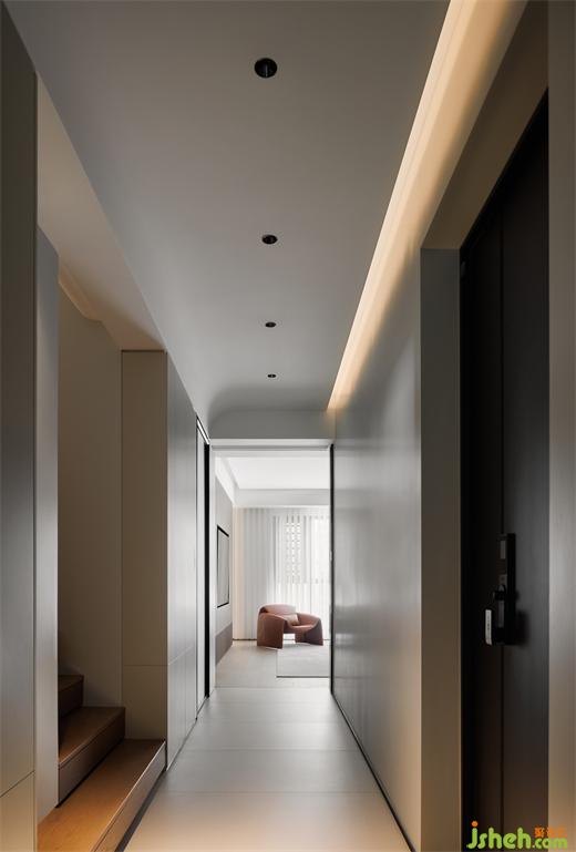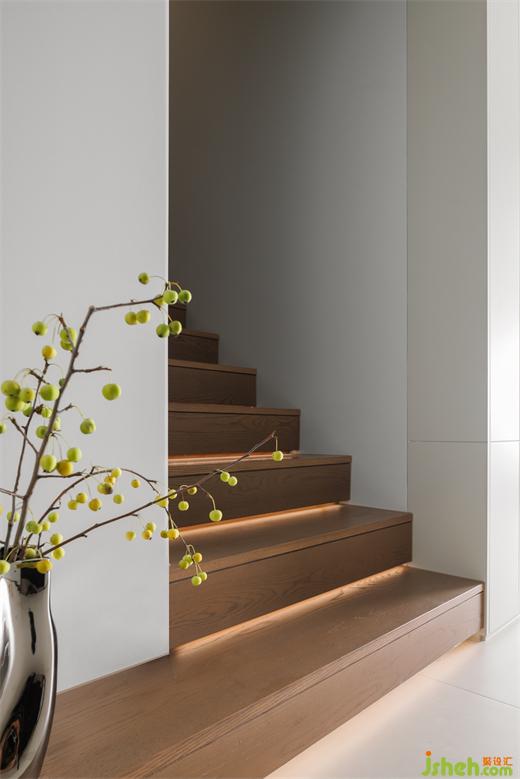 樓梯作為過(guò)渡空間,在功能之上,我們希望能讓居者在行進(jìn)過(guò)程中延續(xù)感官享受。