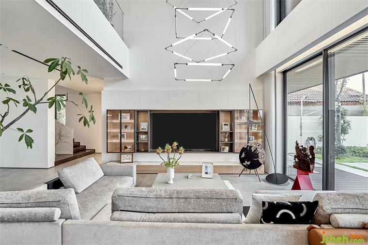 別墅以留白、開放、歸靜寫意,旨在打造人與自然包容共生的場域。場域之間,邊界模糊淡化,借光,營造清爽明亮的舒適居所