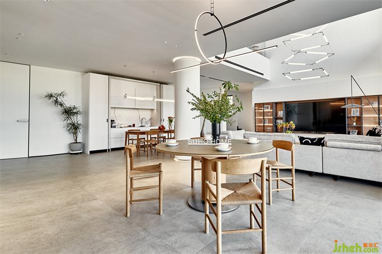 會(huì)客廳開放表達(dá),留白的氣質(zhì)打破壓抑與拘謹(jǐn),從視覺上傳達(dá)純粹的輕盈感。