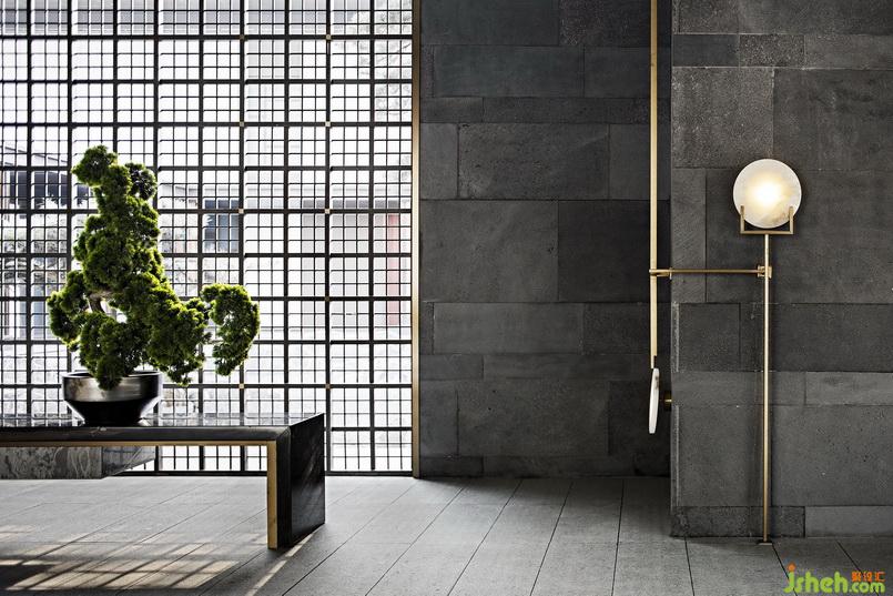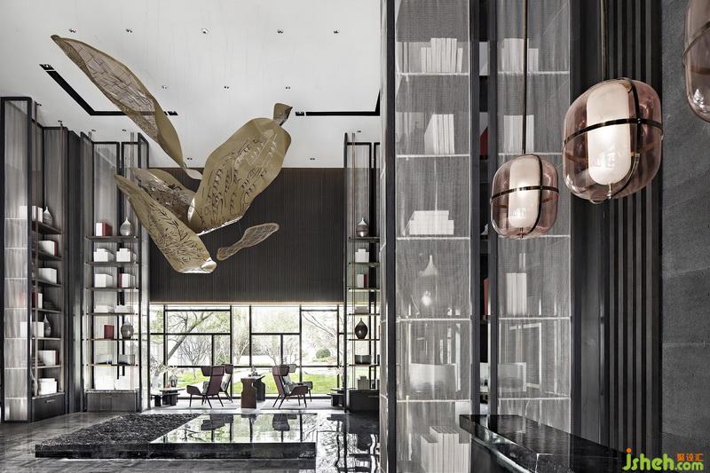 設(shè)計(jì)師將傳統(tǒng)文化脈絡(luò)置入庸正的線條中,通過充滿陣列感的鋪陳營(yíng)建端雅的秩序感,使空間氣質(zhì)完成從繁華都市到靜逸書院的轉(zhuǎn)換與回歸。金色的裝置吊飾在自然光線與室內(nèi)光源的雙重作用下,呈現(xiàn)御光弄影的恣意,傳遞出本真的智慧之美。會(huì)所設(shè)計(jì)