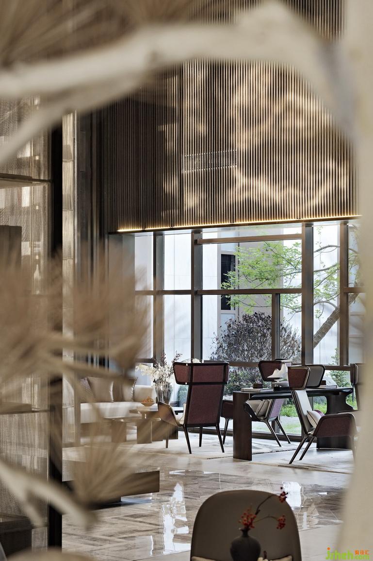 “傳承并不等同于還原傳統(tǒng),而是在完成了與當(dāng)下情境的交互對(duì)話后,以更靈動(dòng)、柔韌的姿態(tài)找回自我?!笔且栽O(shè)計(jì)師跳脫出具象的束縛,以解構(gòu)、拼貼的手法重新解讀“東方”的概念。會(huì)所設(shè)計(jì)